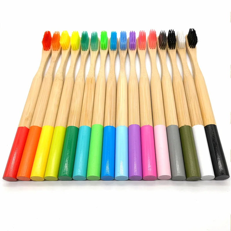 Order rainbow tooth brush Multi-color Natural Bamboo Toothbrush with Round Bamboo Handle Soft Bristle Eco